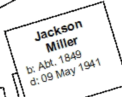 If a Genealogy chart is stored entirely in raster format, as in the example at the left (taken from a popular genealogy program), the raster lines can only approximate diagonal lines and letters. The result is a coarse, “stair case” appearance.